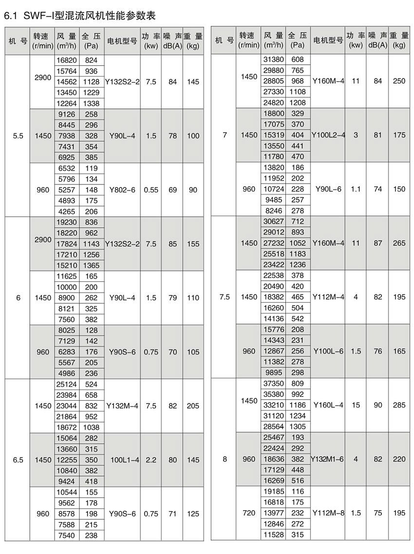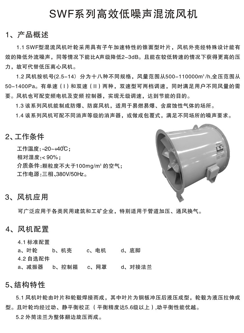 SWF系列不銹鋼混流風(fēng)機(jī)具有效率高、結(jié)構(gòu)緊湊,安裝方便、運(yùn)行可靠、噪聲低等顯著特點(diǎn)。